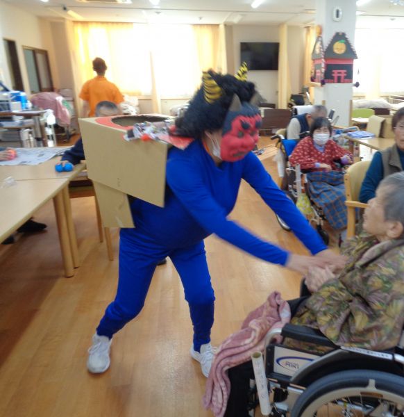 昼食後は 利用者様、職員みんなで 鬼退治ゲームを行いました。